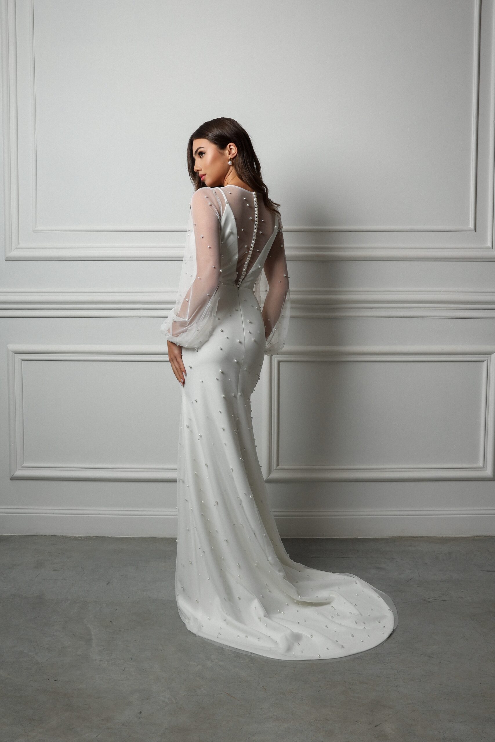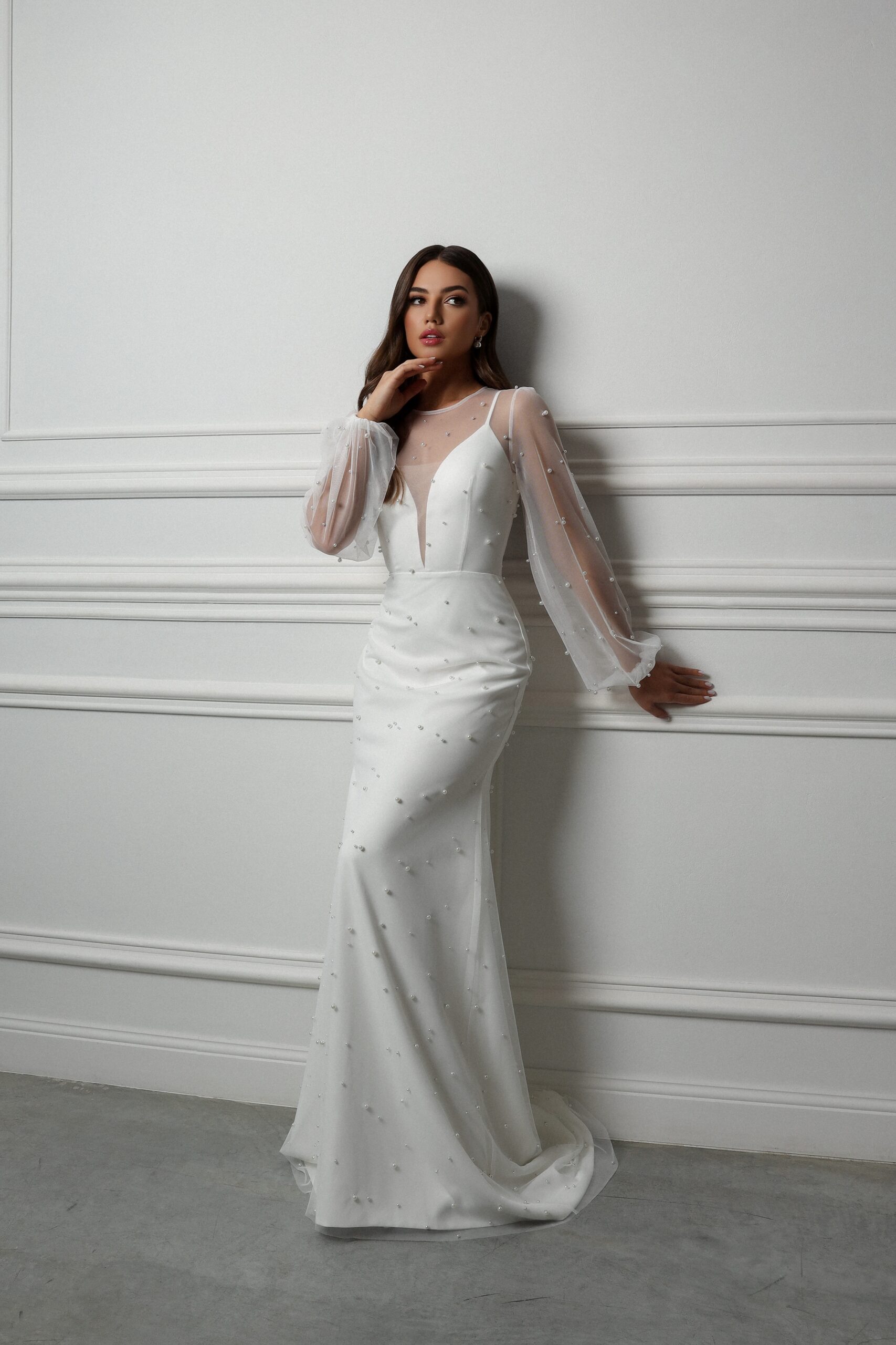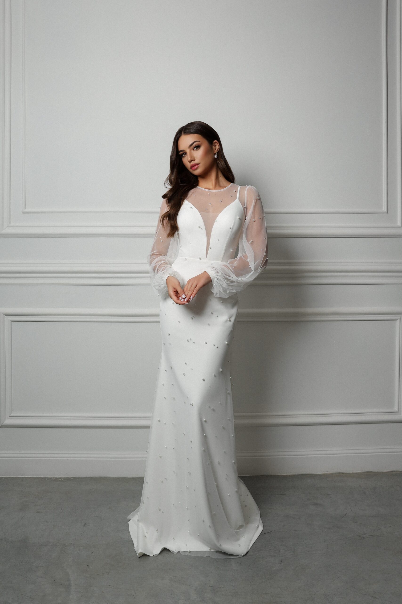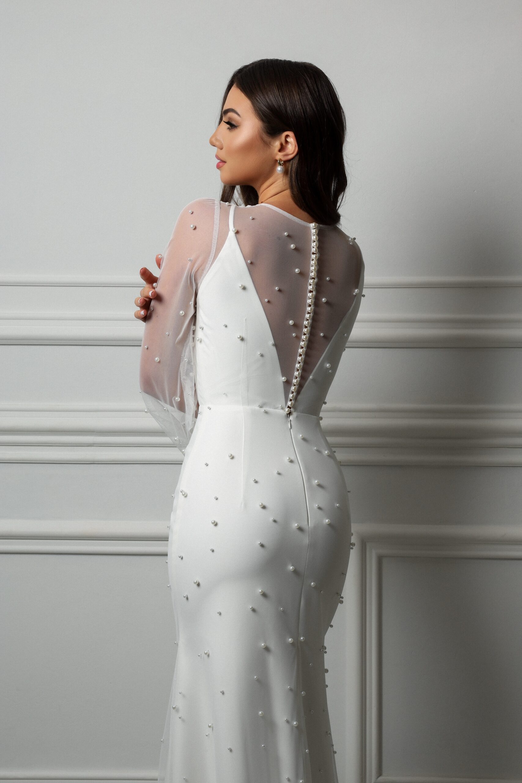 Изысканное свадебное платье с жемчужинами